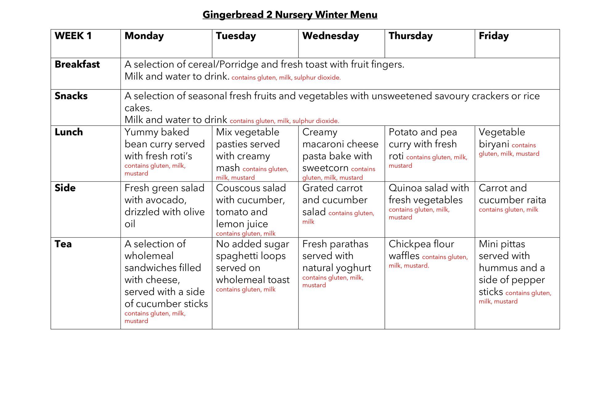 At Gingerbread Nurseries, we proudly follow a vegetarian, multicultural menu designed around the latest nutritional guidelines. With no added sugar and no desserts, we help children develop healthy eating habits while nurturing essential life skills and values every day.